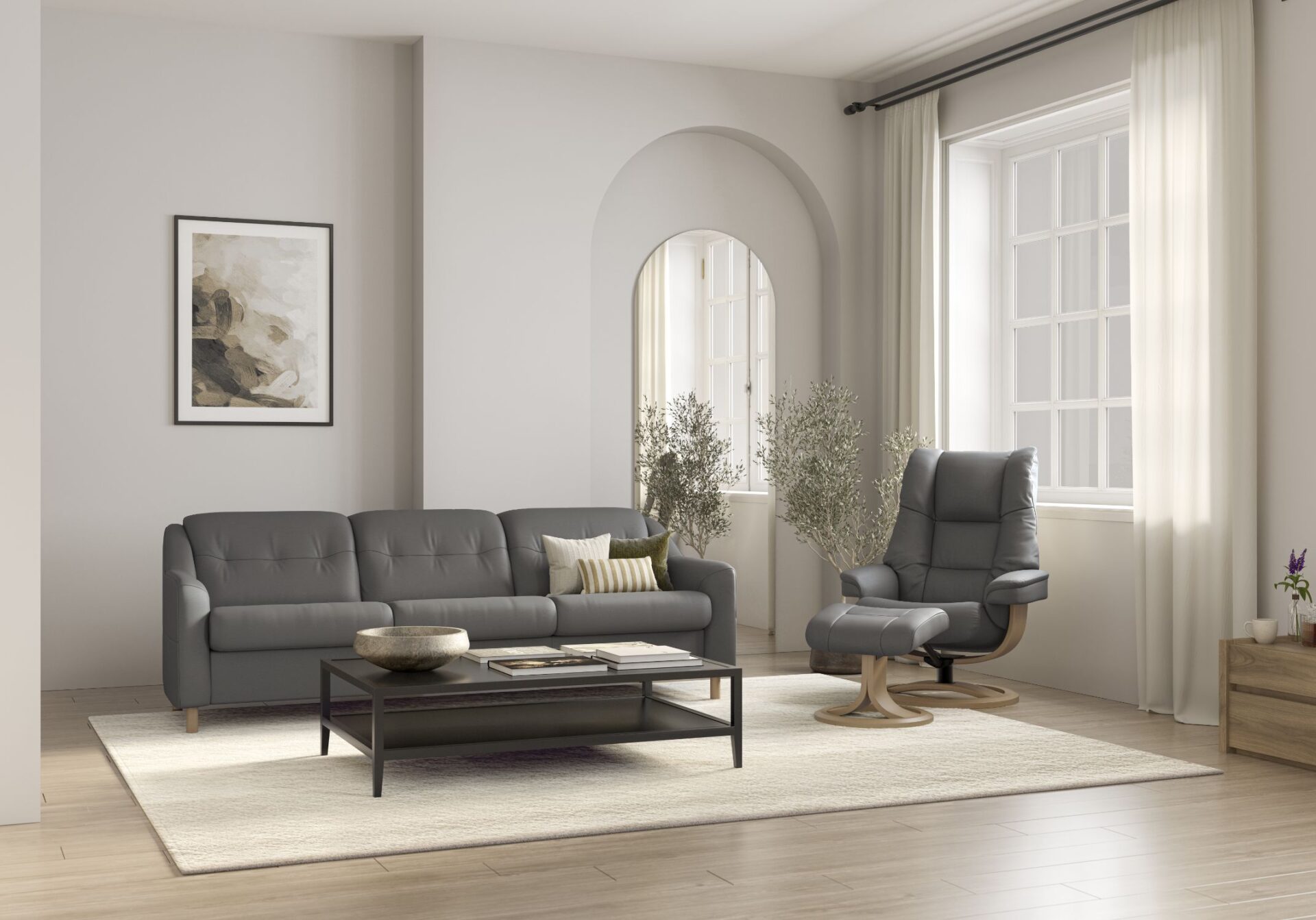 Cappel combines clean lines, plush cushions, and a structured silhouette for a supportive, stylish feel. Curved arms and a sculpted backrest add comfort, while solid wooden legs provide timeless grounding.