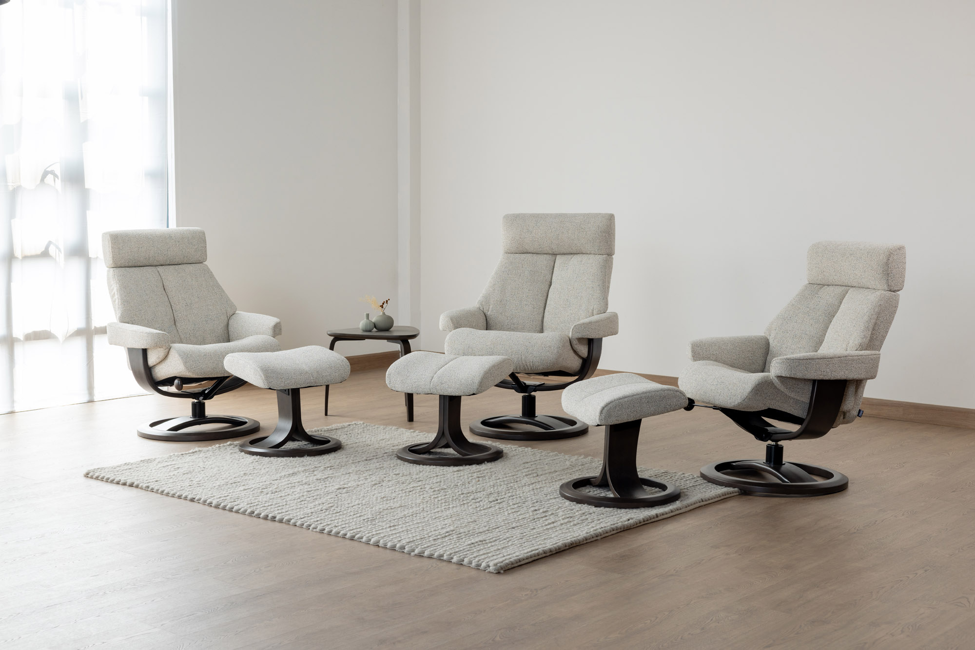 The Nordic 85 is available in three impeccably crafted sizes and three sophisticated base designs, each offering its own elevated height profile, paired with our Multi-Flex height adjustable headrests, together, they allow you to tailor the recliner to your body with precision—creating a personalised seating experience of pure luxury.